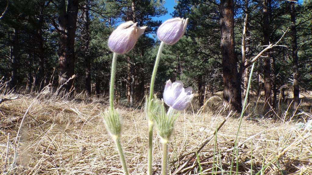Pasque flowers, no snow, no rain, awaiting the sun to rise over the tree covered ridge, and light the blooms, to take a photo, something to take with me, they are still in the shadows, for now, I’m sitting in a pine forest on a dead log, in the wait, and it seems to me I need more of that in my life, sitting in the waiting, enjoying it, not dragged by the time in my head, that says to move, to go, out here the pace never changes, probably the most timeless sense I’m ever to feel, watching the sunlight creep along the ground, ever closer, while I wait among the plant life so resident, the longer I sit the more I notice them, their details of colors, shapes, the textures, the intricacy, the integration, and their comfortable presence among diversity, I’m aware I’m a visitor, I breathe deep of their sense of comfort, I’m the one thing that stands out as different, but they don’t seem to mind, we wait together for the sunlight, and the life energy it brings, sitting in the wait.
